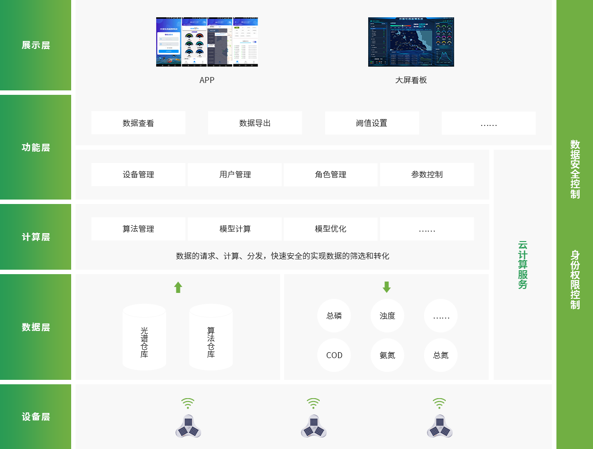 基于物聯網與云計算技術自主研發的光譜大數據處理與分析平臺。智能光譜儀數據通過無線傳輸信號將采集的光譜數據實時上傳至平臺,平臺進行解算分析后,將結果自動反饋回展示平臺進行展示,客戶可以通過展示平臺或手機APP進行查看。